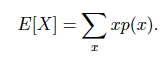 이 수학기호를 말로 설명하면 변수 X의 기댓값은 X라는 행위를 했을 때 나오는 결괏값과 그것의 확률들의 곱들의 합입니다.