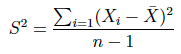 아무튼… 그래서 분모를 N-1을 이용한 표본 분산은 수식으로 다음과 같이 표현됩니다.