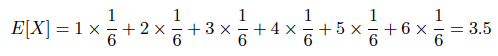 (주사위를 던졌을 때 나오는 결괏값(1,2,...,6)과 각각의 확률 (⅙)의 곱들의 합 = 3.5)