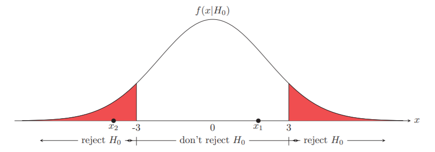 | $p(x|H_o)$ | 0.001 | 0.01 | 0.044 | 0.117 | 0.205 | 0.246 | 0.205 | 0.117 | 0.044 | 0.01 | 0.001 |